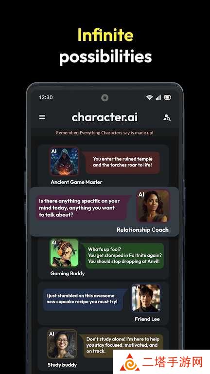 Character安卓版【软件功能】多样化交流:支持多种类型的对话,涵盖日常聊天、兴趣爱好、学习问题等,满足不同用户的需求。