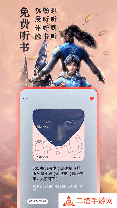 1、边下载边阅读,无需等待。2、缓存全本小说书籍,支持wifi优化下载,为您节省流量。再也不用担心没有网络看小说了3、自动检测并提示更新,是追书者的不二之选。4、完全免费,所有小说免费阅读。