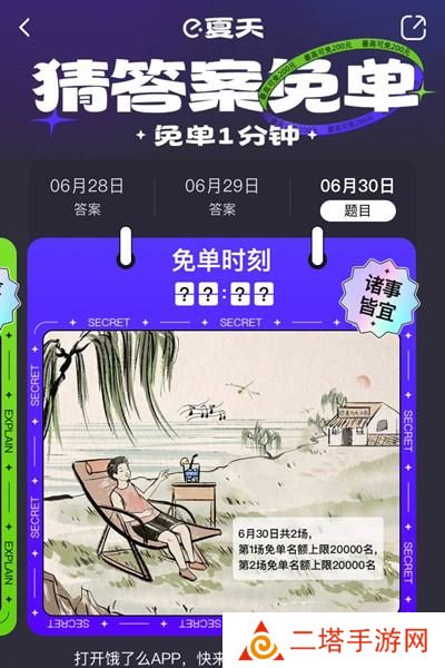 饿了么免单一分钟6.30答案是什么?有许多用户都在问饿了么6.30免单答案是什么,想要知道免单一分钟6.30题目答案怎么解,希望了解饿了么30号免单时间是几点。下面就让菜鸟小编为大家分享,饿了么6月30日免单时间答案解析。