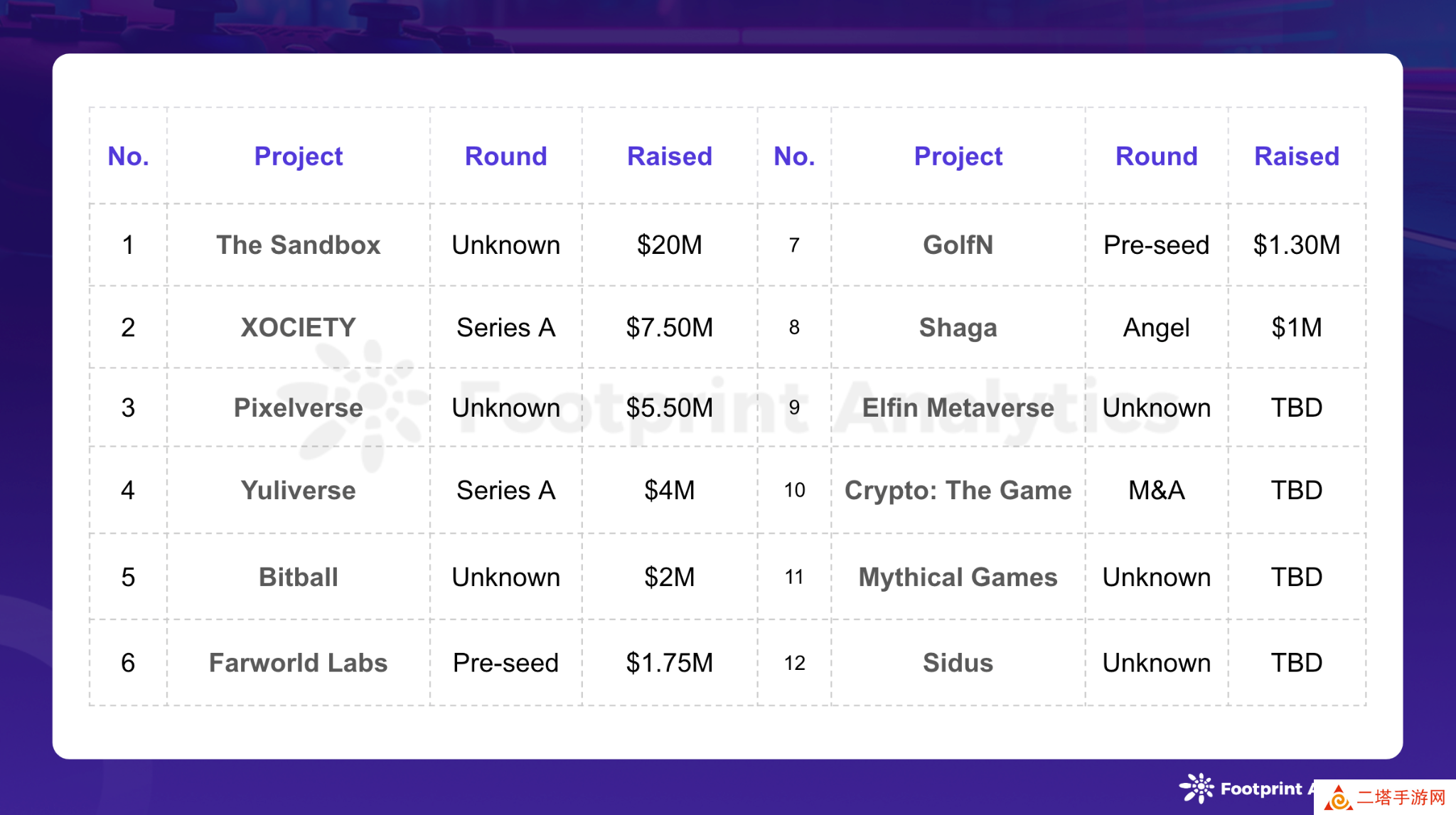 6 月份,Web3 游戏领域通过 12 次融资活动共筹集到了 4,305 万美元的资金,其中 4 次融资活动的具体金额并未对外公布。这一总额与上月的 4,495 万美元相差不大。
