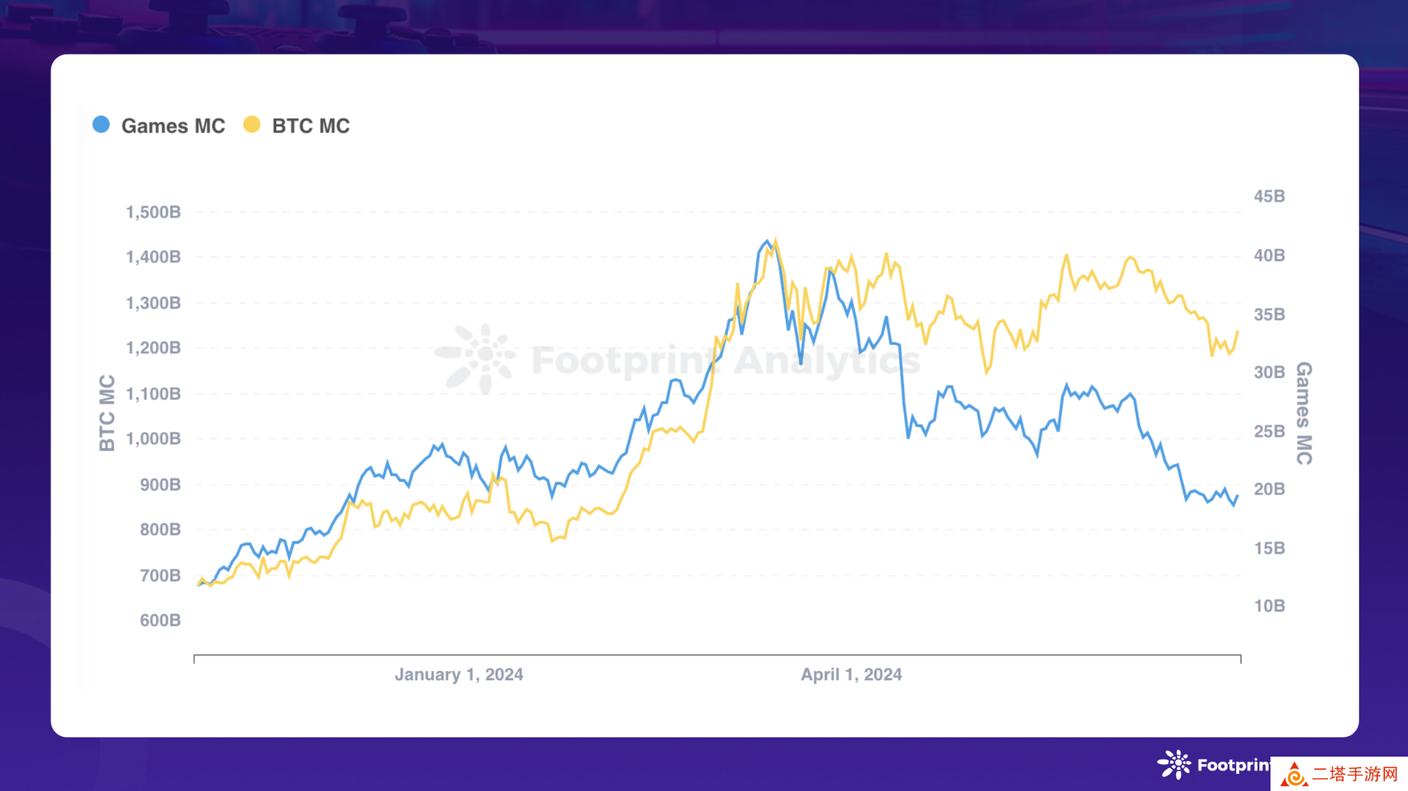 6 月,区块链游戏代币的总市值从 272 亿美元缩减至 196 亿美元,降幅高达 28.1%。这一显著下滑直接反映了游戏代币价格的普遍下滑趋势,其背后原因则在于比特币及整个加密货币市场的低迷表现。