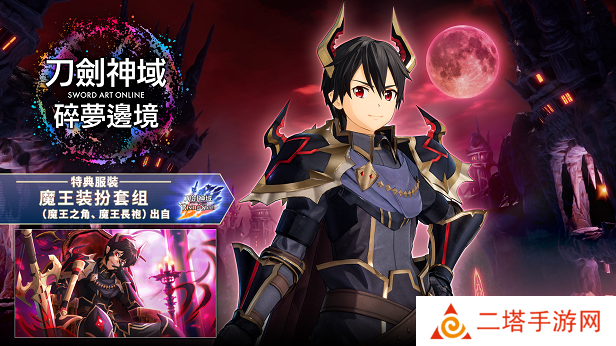 《刀剑神域 碎梦边境》是一款非常有趣的在线多人共斗的动作游戏,也属于是漫改游戏,而这款游戏提前购买可以获得的奖励也有很多,首先是特典服装,也就是魔王装扮套组,里面有魔王之角和魔王长袍。